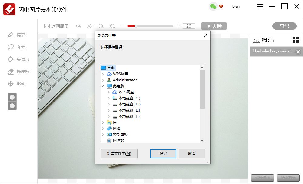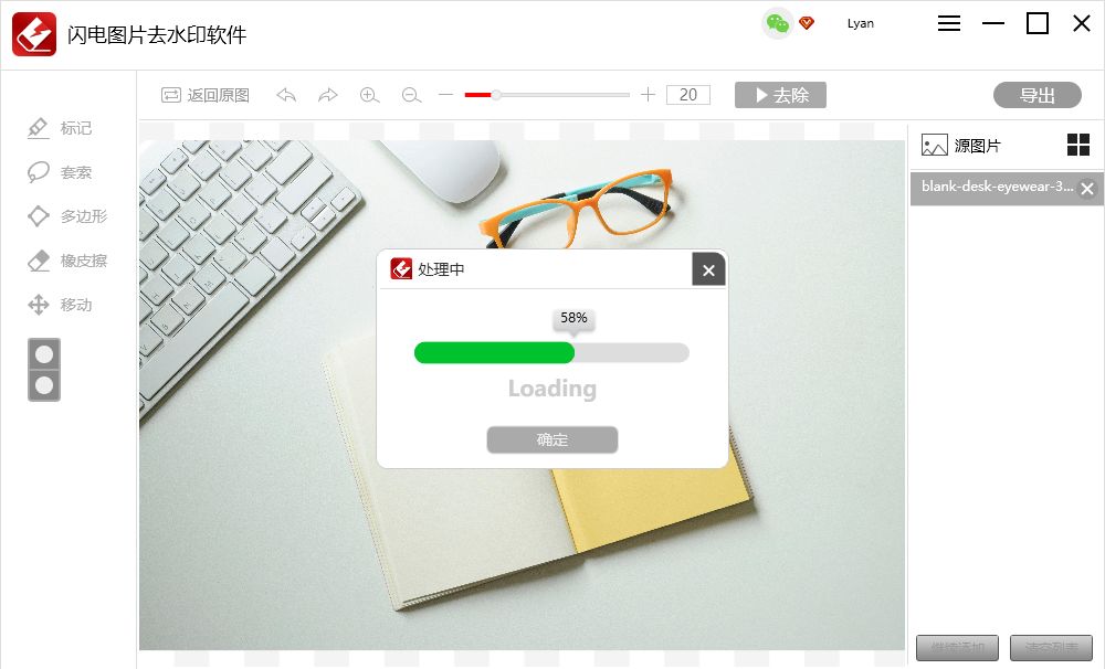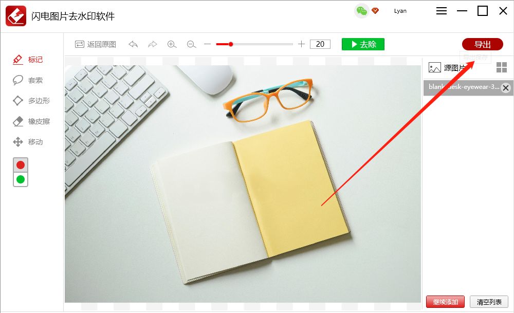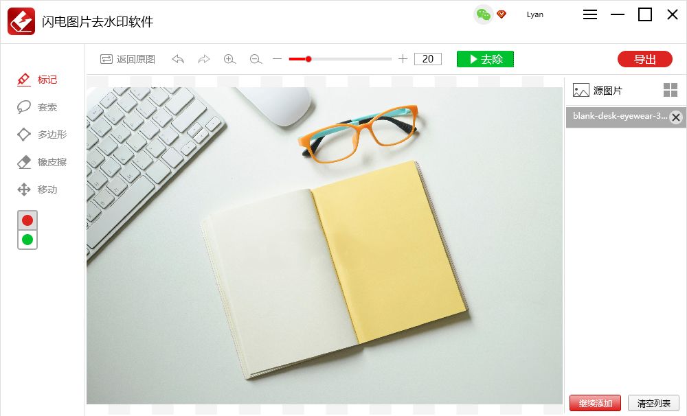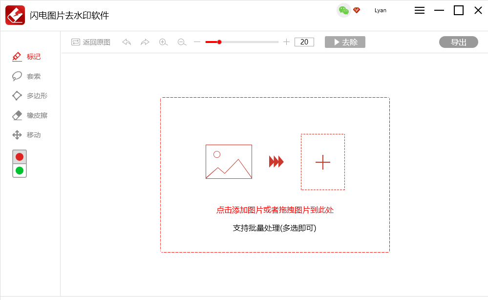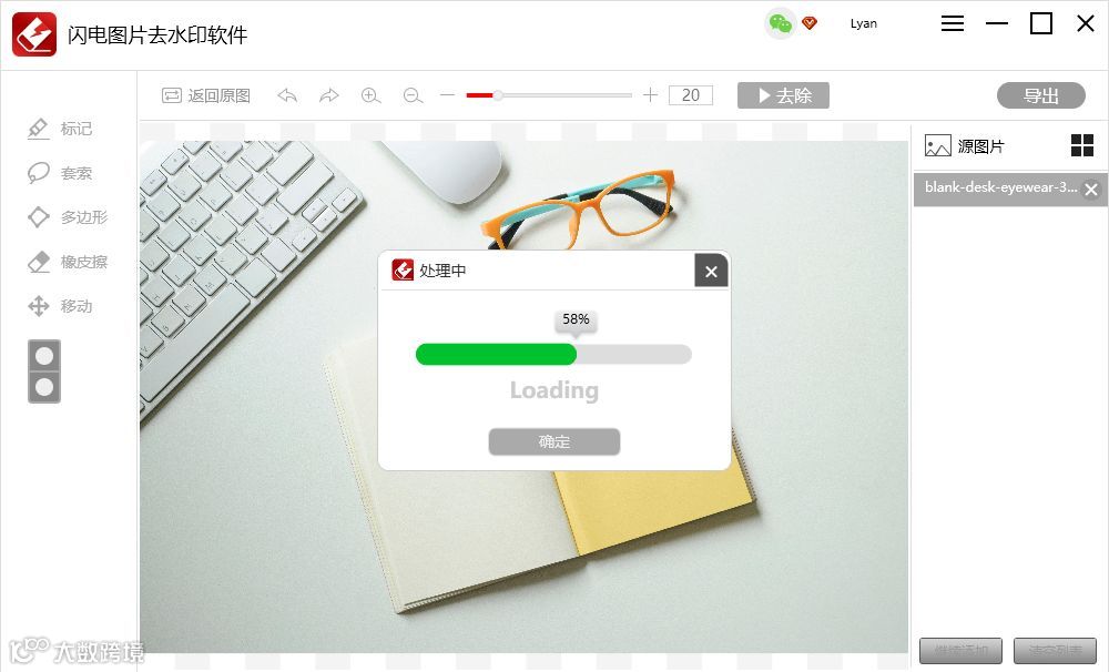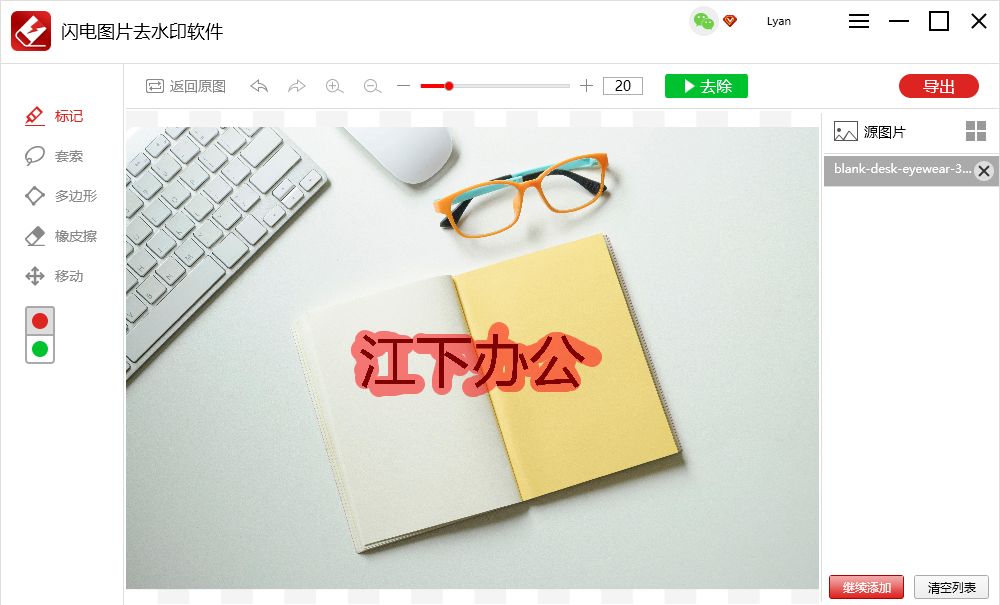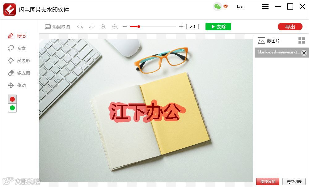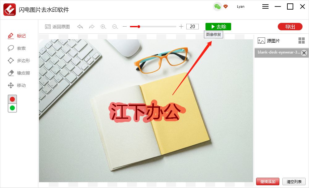 第二步、添加图片后,在软件的左侧可选择需要用到的工具。这里选择“标记”就好了,大家可选择自己喜欢的工具。选择“标记”工具后,直接选择需要去除的水印。