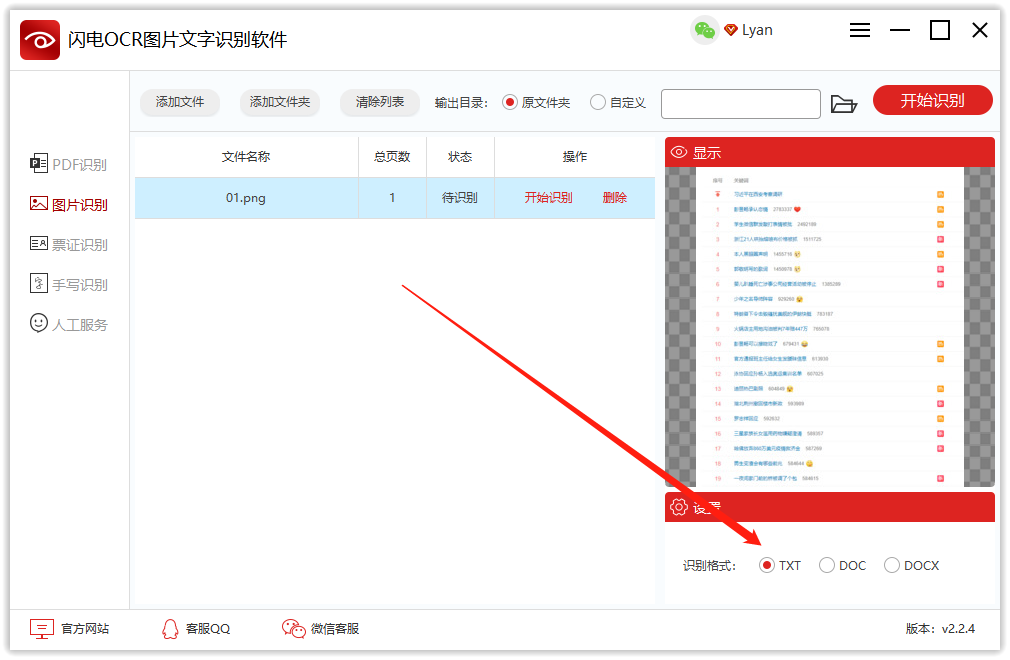 第二步、可以批量添加多张图片进行识别哦,添加后,在这里选择需要识别的格式;