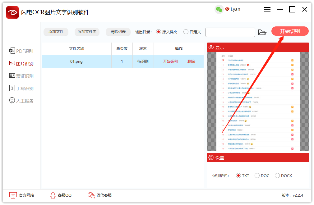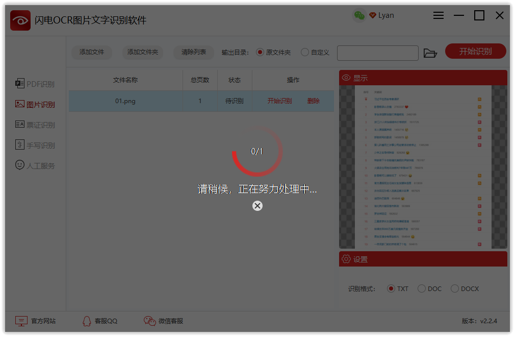 这是一款专业的文字识别软件,能够帮助我们把图片、PDF、票据、证件、手写体等图像文字提取识别成TXT/Word/docx功能,智能识别,从而获得文字信息,完全不需要自己手动输入文字。图片格式支持包含JPG/JPEG/PNG/BMP,票据证件文件包含身份证/银行卡/驾驶证/行驶证/营业执照/车牌/护照/火车票等,使用户可以体验全新的数字化生活!