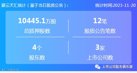 2023年11月20日,股票质押总质押股数1.04亿股,上市公司数3家,股质公告笔数12笔,股东数4个。