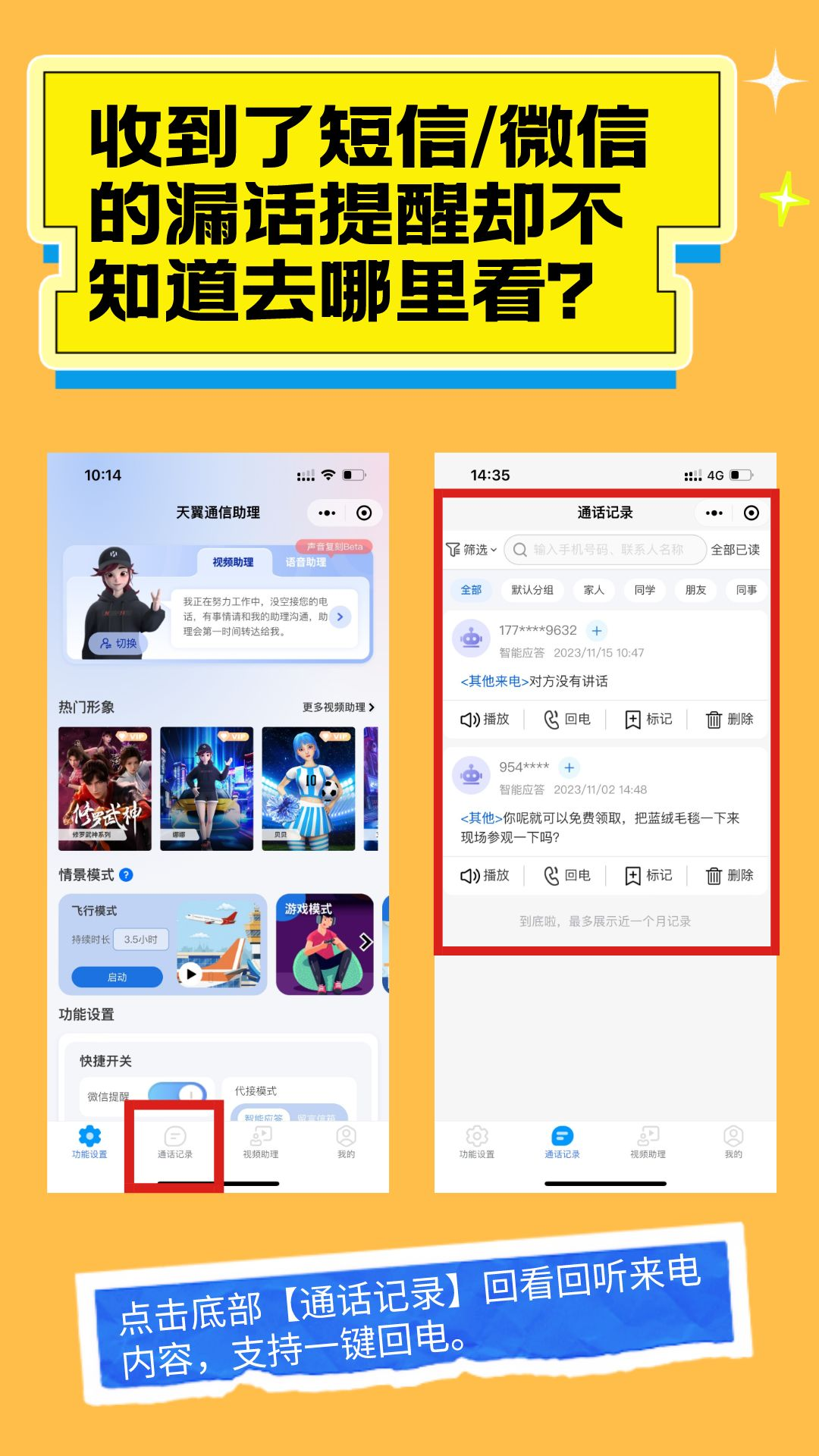 天翼通信助理是基于中国电信的互联网及通讯网络能力,向用户提供漏话提醒、智能应答等产品与服务,保障通信安全。