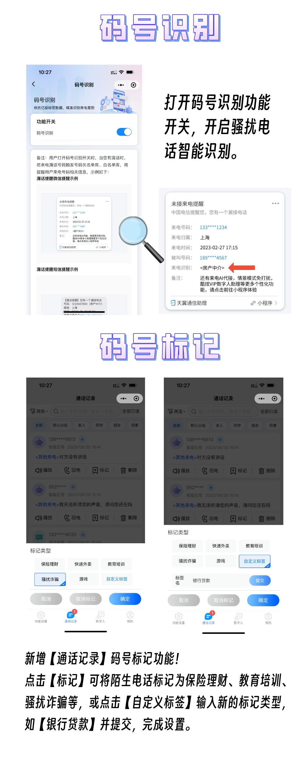 天翼通信助理是基于中国电信的互联网及通讯网络能力,向用户提供漏话提醒、智能应答等产品与服务,保障通信安全。