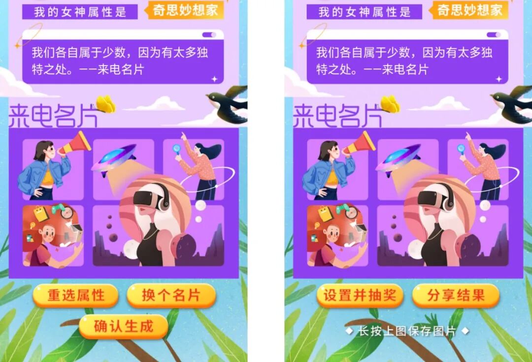 点击“换个名片”更换名片内容至出现心仪海报后,点击“确认生成”生成春日海报。点击“设置并抽奖”,即可进入订购界面。