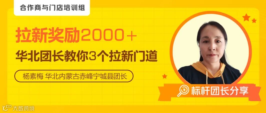 内蒙古赤峰市宁城县杨素梅团长,经营一家快递驿站,成为优选团长将近1年时间。平日里成绩平平的她,近1月新客数百余人,拉新奖励2000+,杨团长把拉新这件事情做出了收获,更做出了门道。