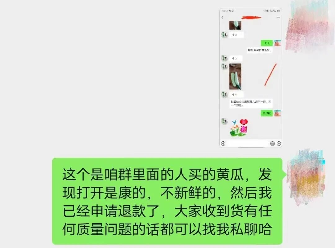 “XX今天买的鸡蛋有点问题,我刚刚已经帮他成功申请了售后退款,大家以后买东西有什么问题,都可以随时找我。”