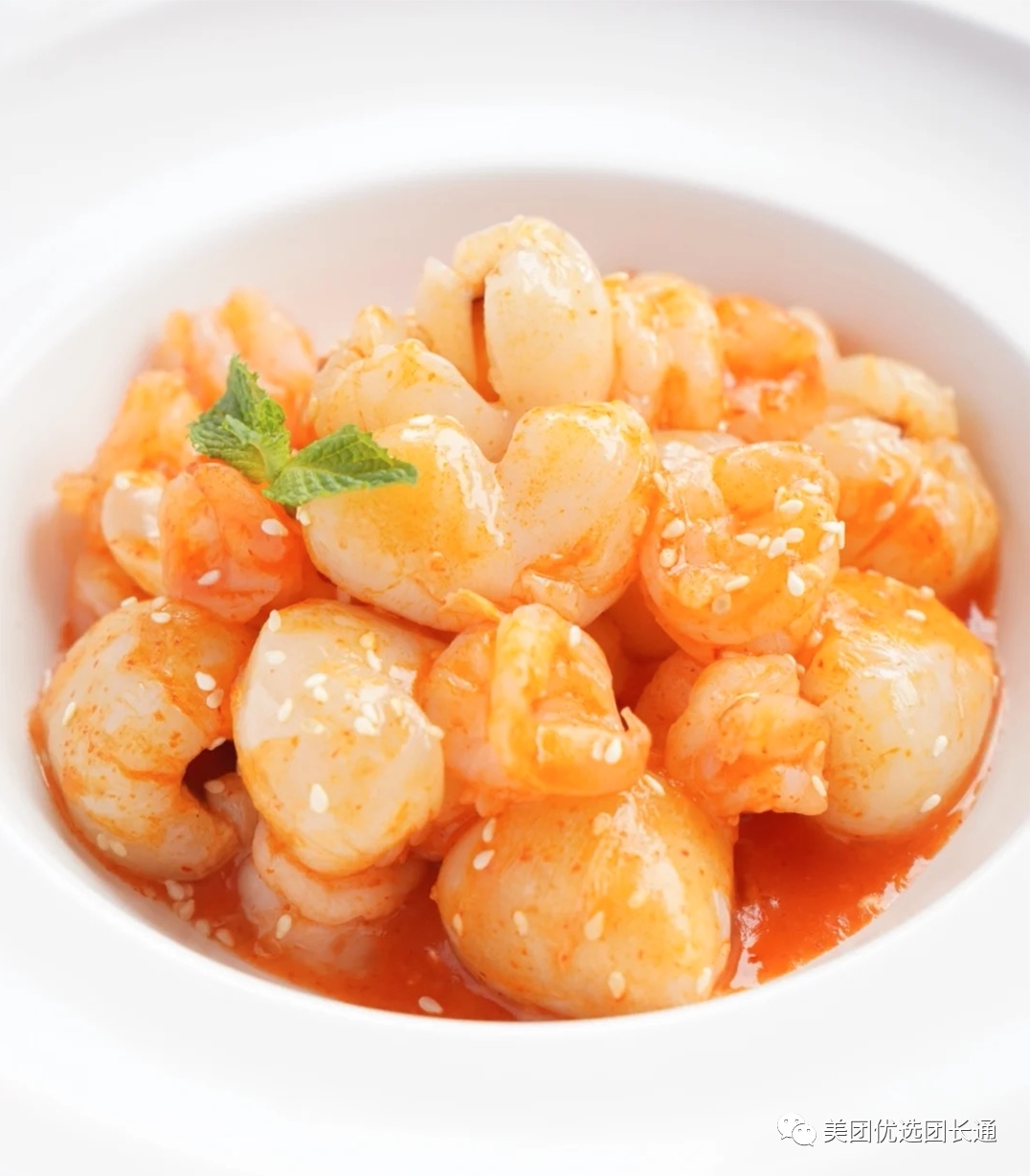 将虾仁炒熟后捞出;泰式辣酱加2勺水煮至沸腾,倒入荔枝和虾球翻炒2-3分钟。