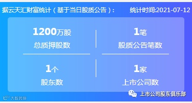 2021年7月12日,股票质押总质押股数1200万股,上市公司数1家,股质公告笔数1笔,股东数1个。