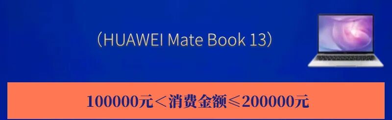 6、100000元<消费金额≤200000元,奖励华为笔记本1台(HUAWEI Mate Book 13)