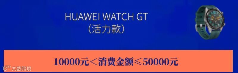 4、10000元<消费金额≤50000元,奖励华为手表1块(HUAWEI WATCH GT 活力款)