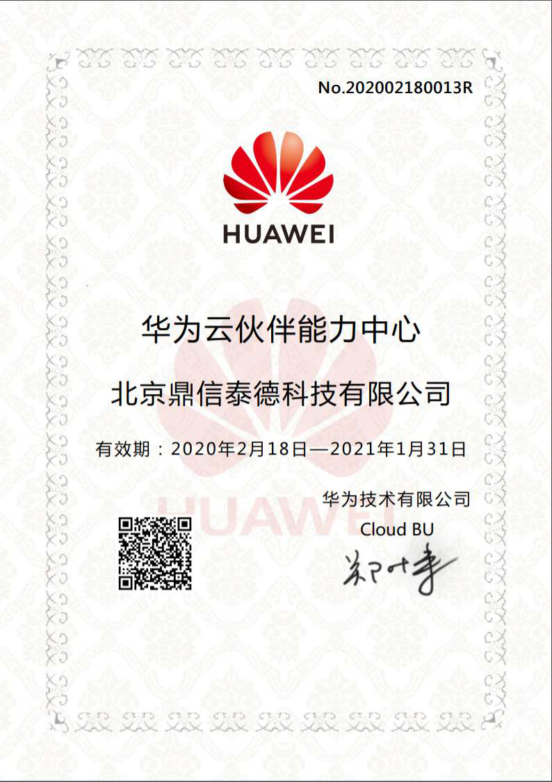 3、华为云伙伴能力中心(一级经销商):指获得华为授权,作为精英服务商的上级伙伴,负责华为云精英服务商(二级经销商)发展,并对其进行华为云业务的培训、技术支持、服务支持、品牌推广,同时对其负有管理责任。本协议中,乙方所对应的华为云伙伴能力中心是指【北京鼎信泰德科技有限公司】。