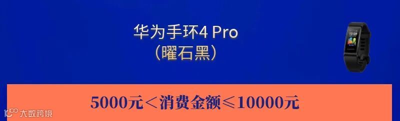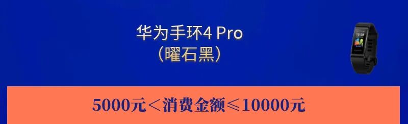 3、5000元<消费金额≤10000元,奖励华为手环1个(华为 手环4Pro)