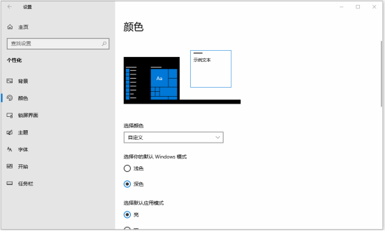 在左侧菜单中选择“颜色”选项,然后在右侧找到“使开始菜单、任务栏和操作中心透明”选项。