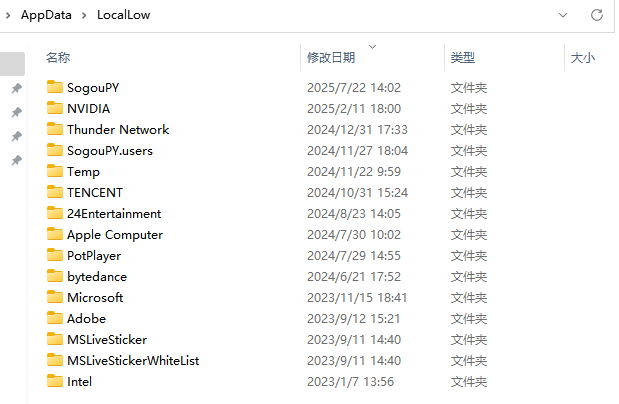 “Low”指的是较低的安全权限级别。存储在这里的数据,与普通Local文件夹不同,LocalLow文件夹中的应用程序以更严格的权限运行,通常用于浏览器插件、安全软件等需要限制权限的程序。