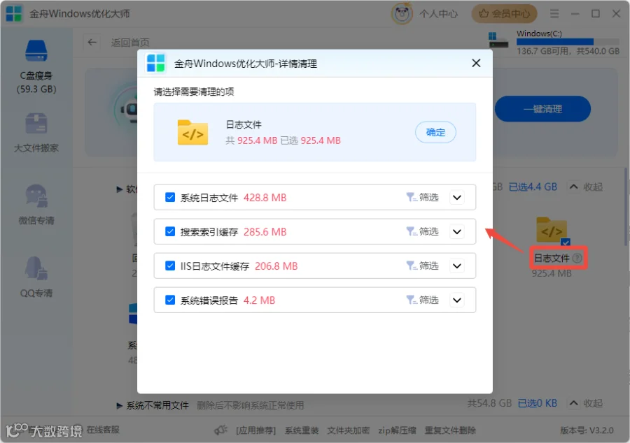 同样推荐使用金舟Windows优化大师这类工具进行批量、安全的扫描清理,它们会一并处理这些位置的可清理项。