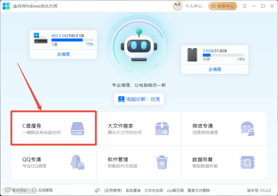 金舟Windows优化大师 官网下载:https://www.callmysoft.com/wincleaner?loadPromotion=sFhMx80MHp0ae2TL