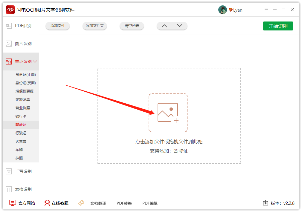 第一步、双击打开软件,在左侧选择“票证识别”-“驾驶证”;