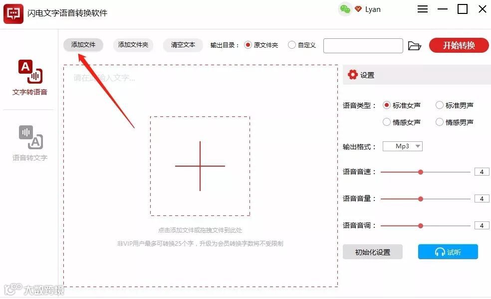 第二步、在这里,选择“添加文件”将带有文字的文件添加进来。