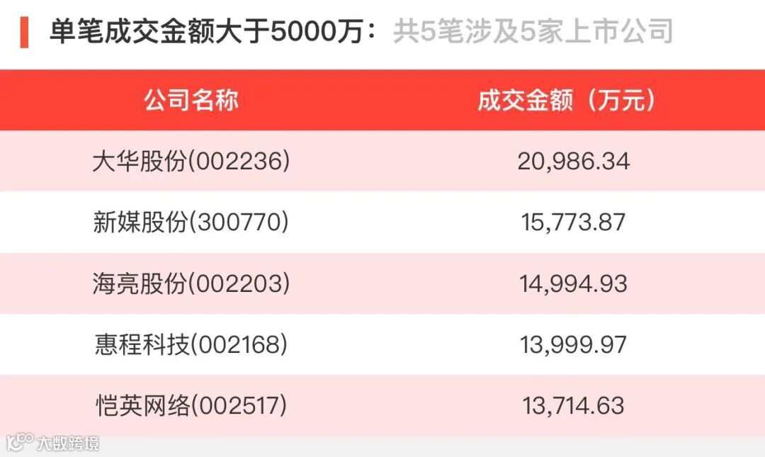 2020年6月2日,大宗交易成交金额20.45亿元,交易股票数52只,成交笔数80笔,流通股平均成交折价率96.98%,成交数量19552万股。