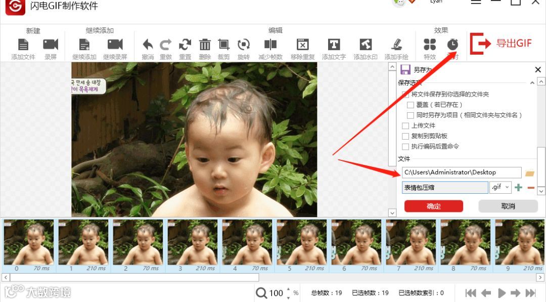 第六步、最后,点击“导出GIF”,在“文件”中,我们给文件设置一个保存位置以及重命名,点击“确定”就完成啦!