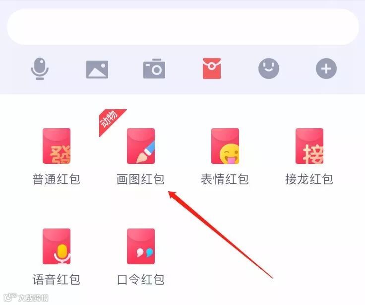 首先,打开手机QQ,然后选择一个好友进入聊天界面,在对话框中,选择红包按钮,如图所示,选择「画图红包」。