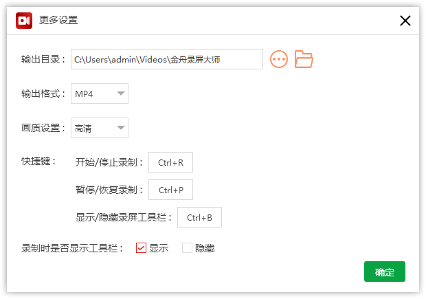 默认的输出文件夹:C:\Users\admin\Videos\金舟录屏大师