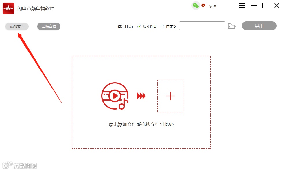 一、双击打开软件后,点击左上方的“添加文件”,然后将需要剪辑的音频文件上传到软件中。