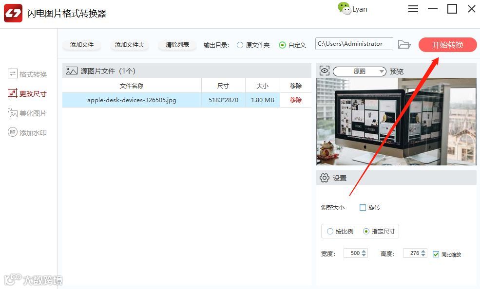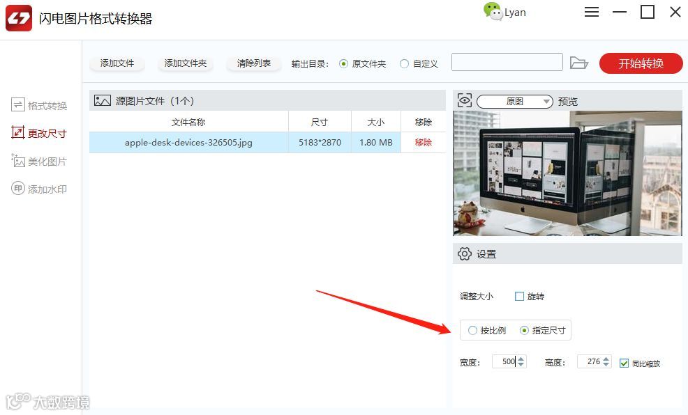 第三步、在右下方,我们可以对图片尺寸进行修改,可按比例调整,也可指定尺寸,大家可任意调整。