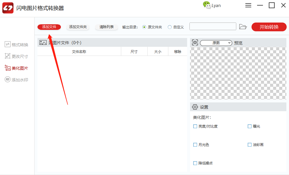 第二步、再选择“添加文件”,将需要处理的图片上传到软件上。