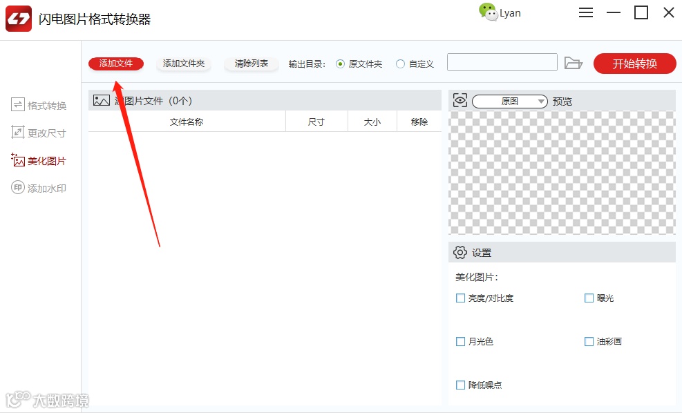 第二步、接下来,点击“添加文件”,将需要处理的图片上传到软件上。