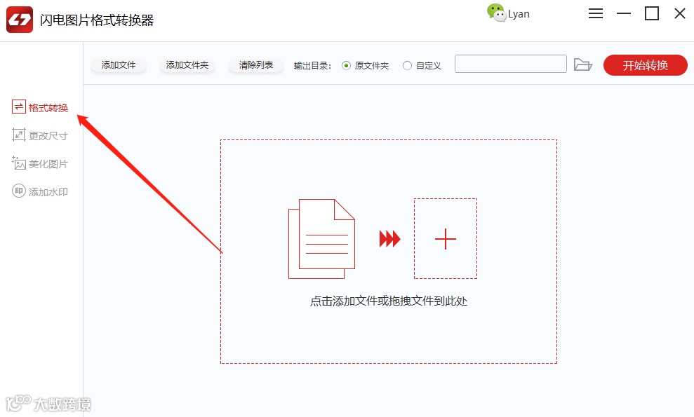 第一步、打开闪电图片格式转换器后,我们先选择功能“添加水印”。