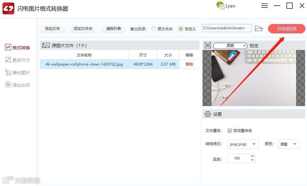 第五步、最后,点击“开始转换”即可,照片处理过程中,需要耐心等候几秒钟,成功后直接打开查看图片就可以啦!