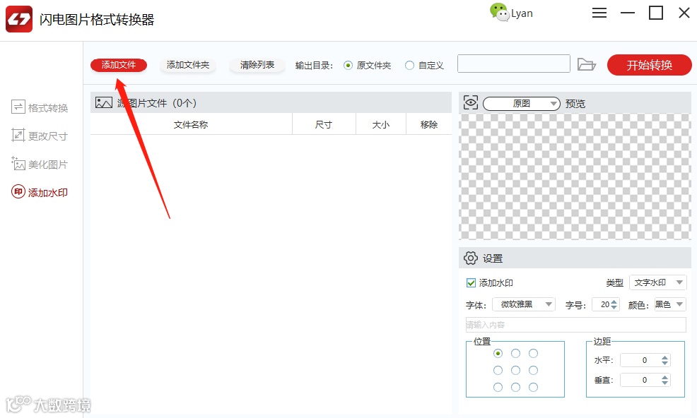 第二步、然后再选择“添加文件”,将需要添加水印的图片上传到这里来。