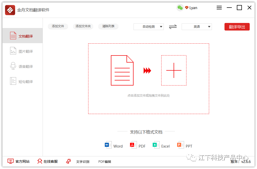 这是一款体积小、功能强大的文档翻译神器,它的界面简洁、容易上手。一键添加就能翻译文档、翻译图片、翻译语音、翻译短句的文档翻译助手,带您翻山越岭看世界!
