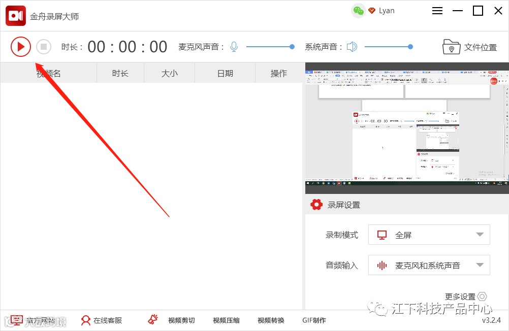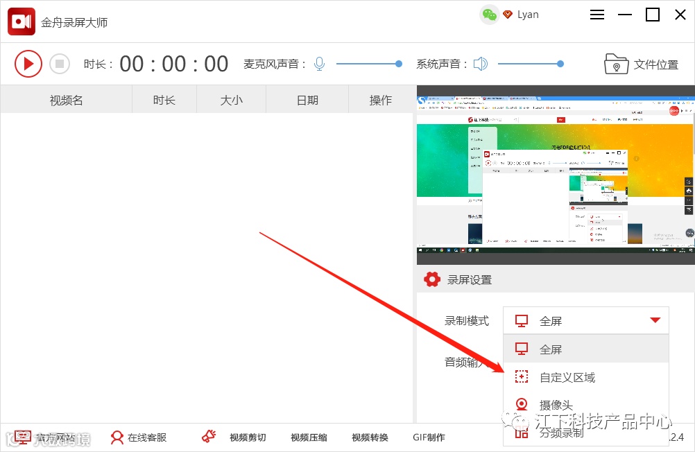 步骤一、首先,双击打开录屏大师,在界面右下角,我们选择需要录制的模式,共有四种模式可选择。