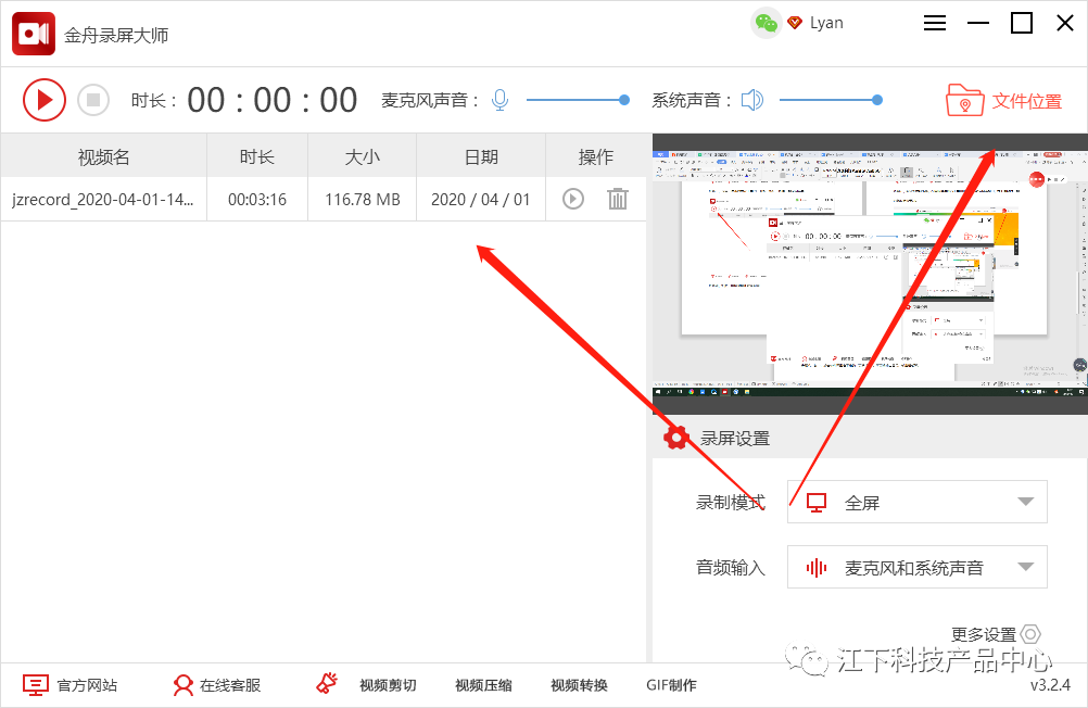 步骤六、录制完成后,可直接播放录制好的视频文件;点击界面右上角的“文件位置”可预览所有由该软件录制的所有文件。