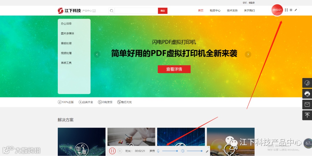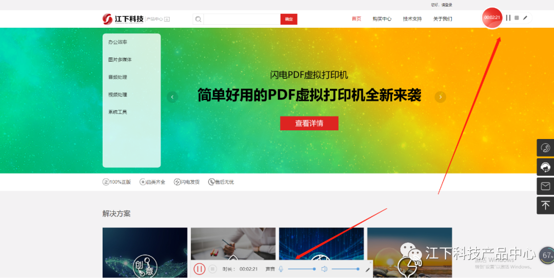 步骤五、选择软件最小化,在电脑屏幕的右上角和正下方,都有悬浮窗口,我们可随时开始/暂停/结束录制。