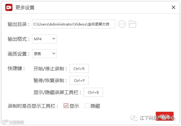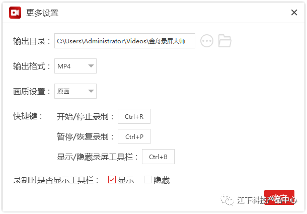 默认的输出文件夹:C:\Users\Administrator\Videos\金舟录屏大师