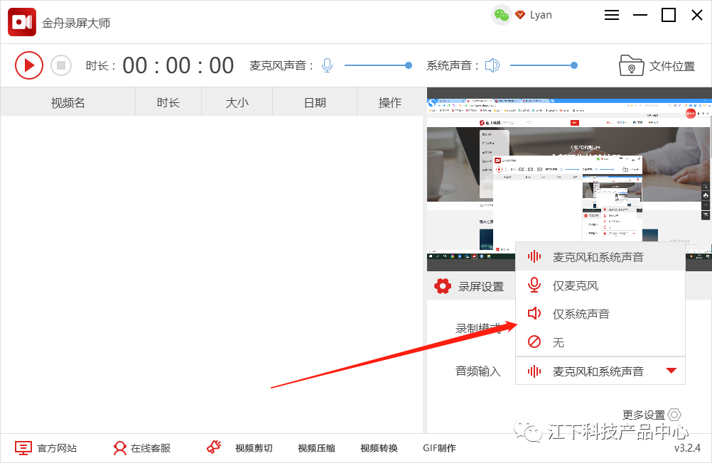 步骤二、选择好录屏模式后,我们接下来选择音频输入,在这里我们可以选择自己需要的声音源。