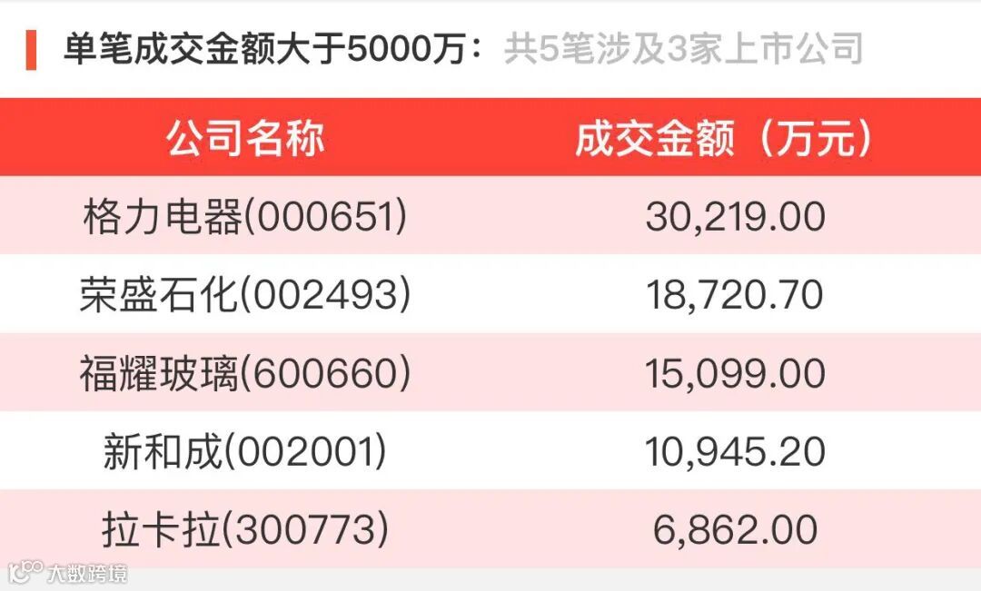 2020年7月3日,大宗交易成交金额36.01亿元,交易股票数72只,成交笔数137笔,流通股平均成交折价率96.16%,成交数量25378万股。