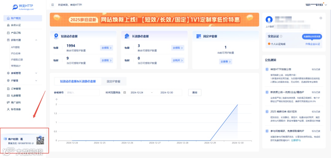 完成个人认证&企业认证,您可享有神龙HTTP官网福利套餐;