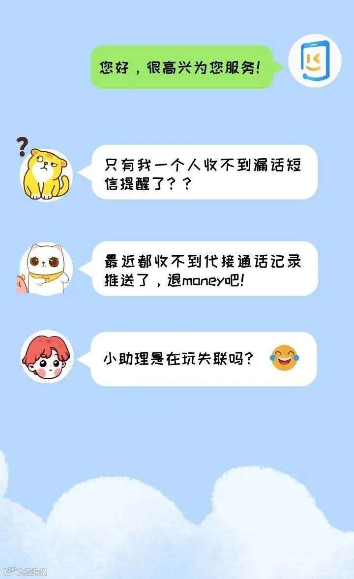 在手机关机、没信号、不可及状态等各种状态下,为你们及时推送提漏话提醒、留言消息和代接电话记录,保证重要来电信息绝不错漏。