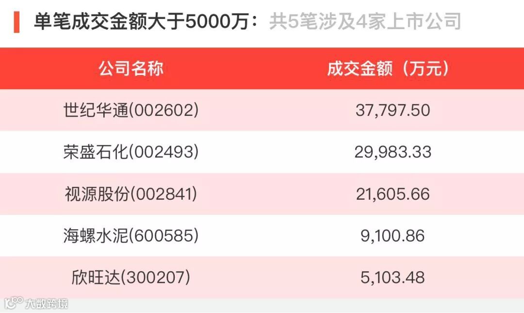 2020年1月22日,大宗交易成交金额21.97亿元,交易股票数46只,成交笔数100笔,流通股平均成交折价率96.91%,成交数量16913万股。