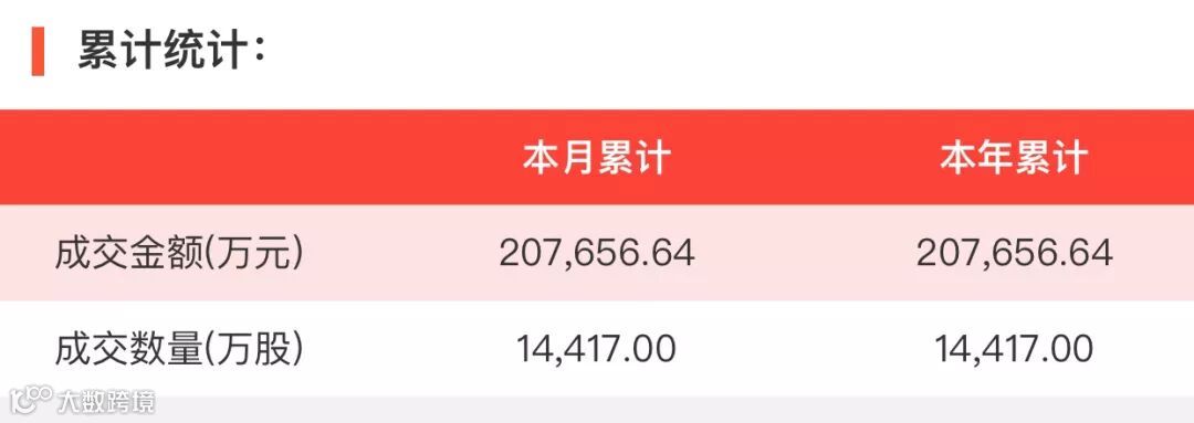 2020年1月2日,大宗交易成交金额20.77亿元,交易股票数60只,成交笔数130笔,流通股平均成交折价率96.68%,成交数量14417万股。