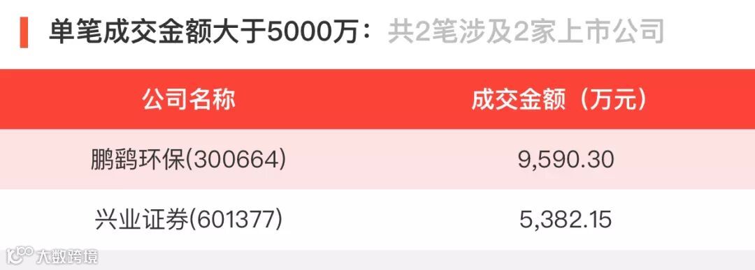 2019年10月30日,大宗交易成交金额5.8亿元,交易股票数35只,成交笔数46笔,流通股平均成交折价率96.1%,成交数量5998万股。