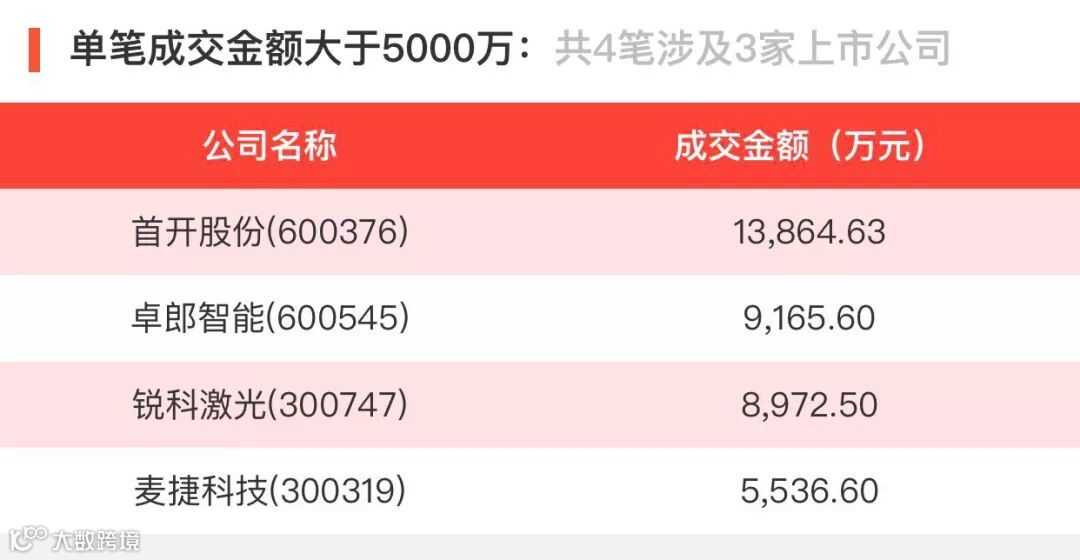 2019年11月27日,大宗交易成交金额13.72亿元,交易股票数51只,成交笔数83笔,流通股平均成交折价率97%,成交数量16449万股。
