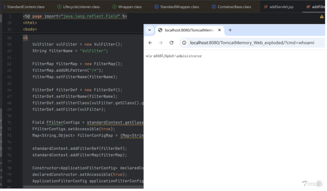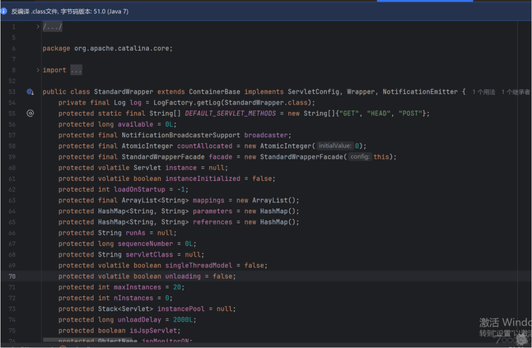 其实我们在下面学习内存马过程中,回过头来发现一直都是在对StandardContext进行操作,由于这个类是已经被实例化在内存中去了,只能通过反射去获取,去动态操作里面的内容