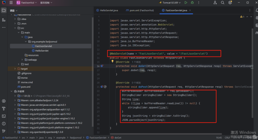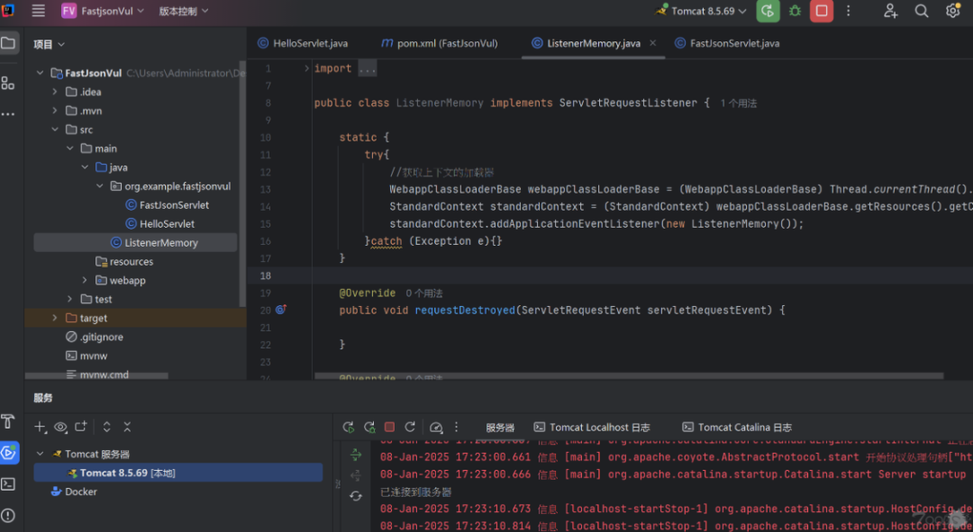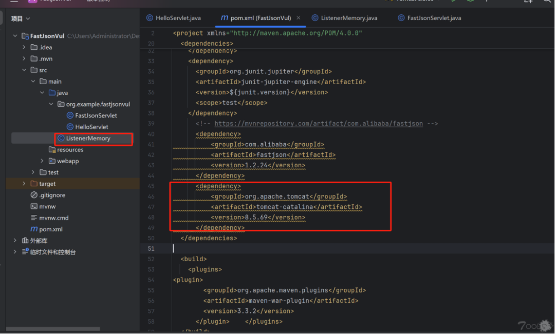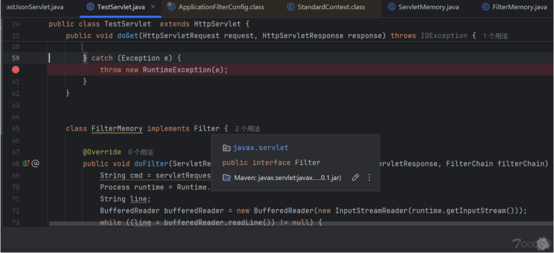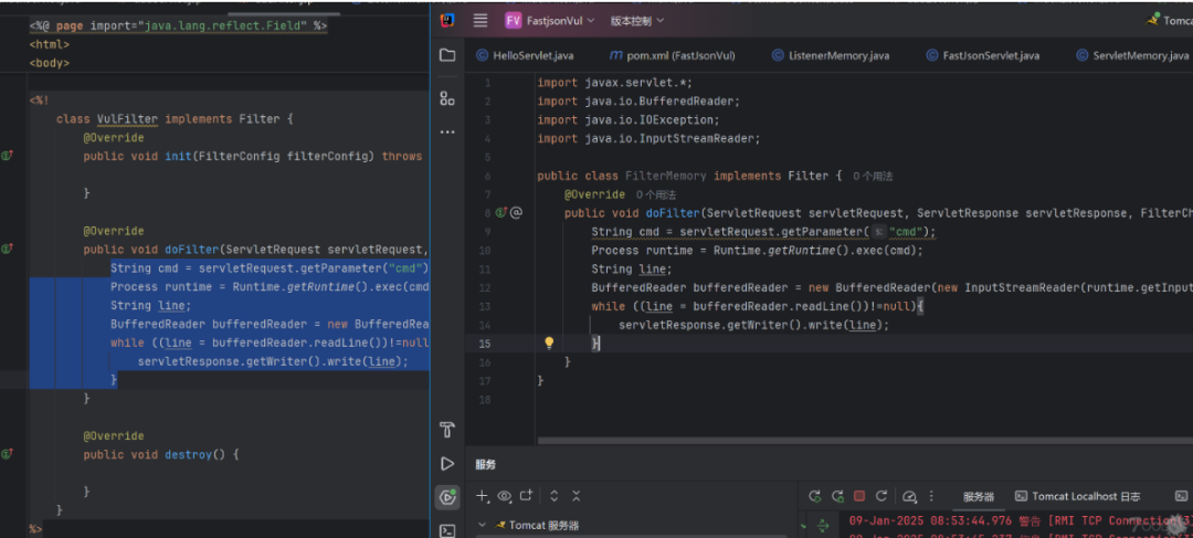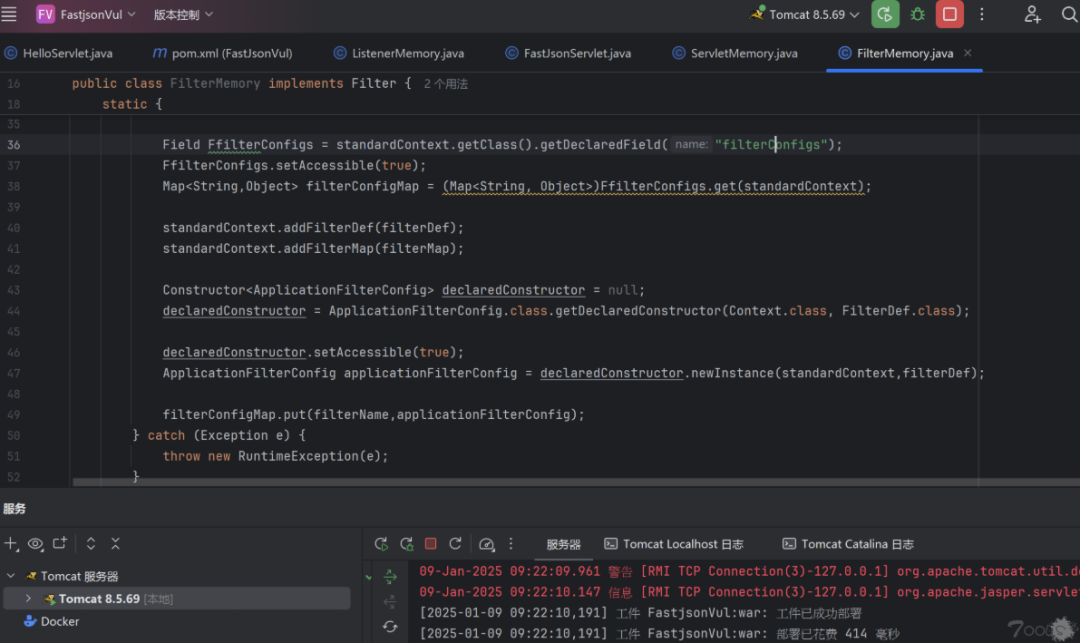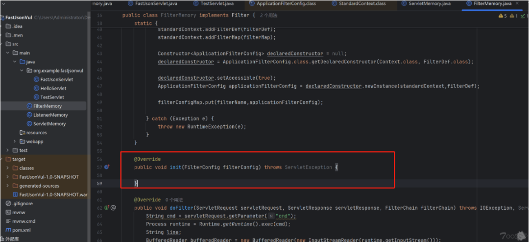 有了前面Listener的编写知识,下面我们制作Filter也就简单了,这里就直接在Fastjson项目上直接编写内存马(前面也分析了,里面有我们所需的环境)