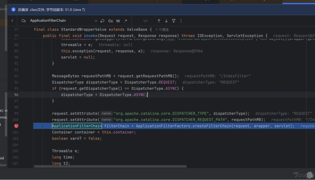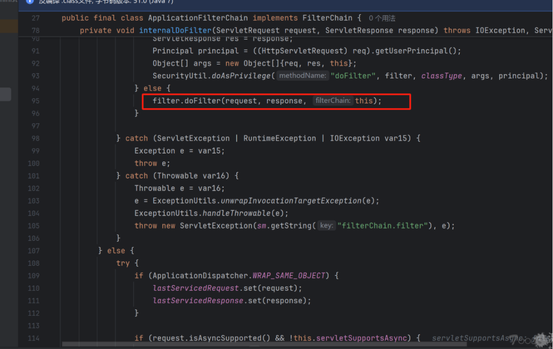 这里一直走到调用我们filter的init方法就出错了,再往下走一步就出错了