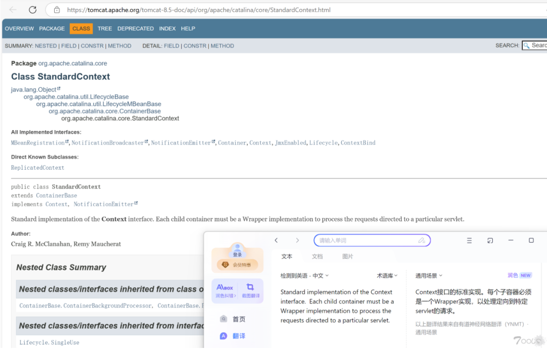 其实结合翻译知道,Context就代表一个Web应用,但是呢,他又是一个接口,所以tomcat给我们做了一个默认的实现类StandardContext,官方自己也说这个StandardContext提供了很多重要功能